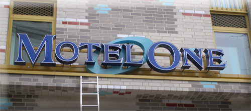 | Auch die Hotelkette Motel One wurde mit einer neuen Front ausgestattet. | |