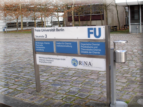 Für die Freie Universität Berlin wurde ... ein neues Eingangsschild konstruiert. |